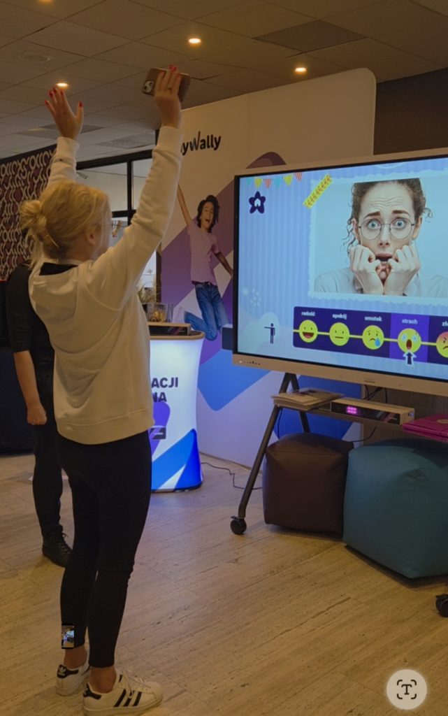 myWally to niewielkie urządzenie, które podłączamy do dowolnego monitora interaktywnego. W środku ukryto sprytną technologię śledzenia ruchu, dzięki której uczniowie mogą sterować grą… swoim ciałem. Machnięcie ręką, krok w bok, skłon – i już dzieje się akcja na ekranie. Nie potrzeba kontrolerów ani aplikacji w telefonie. Wystarczy przestrzeń przed monitorem i odrobina spontaniczności.